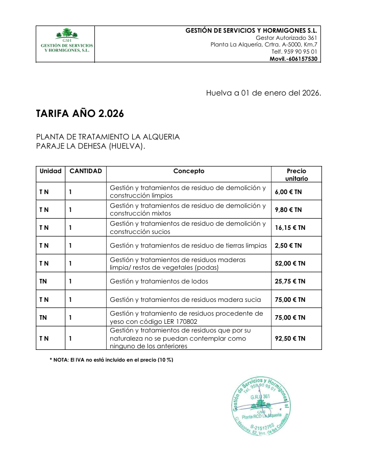 Tarifa de Residuos